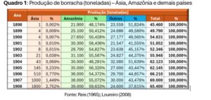 Quadro 1: Produção de borracha (toneladas) – Ásia, Amazônia e demais países