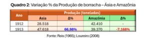 Quadro 2: Variação % da Produção de borracha – Ásia e Amazônia