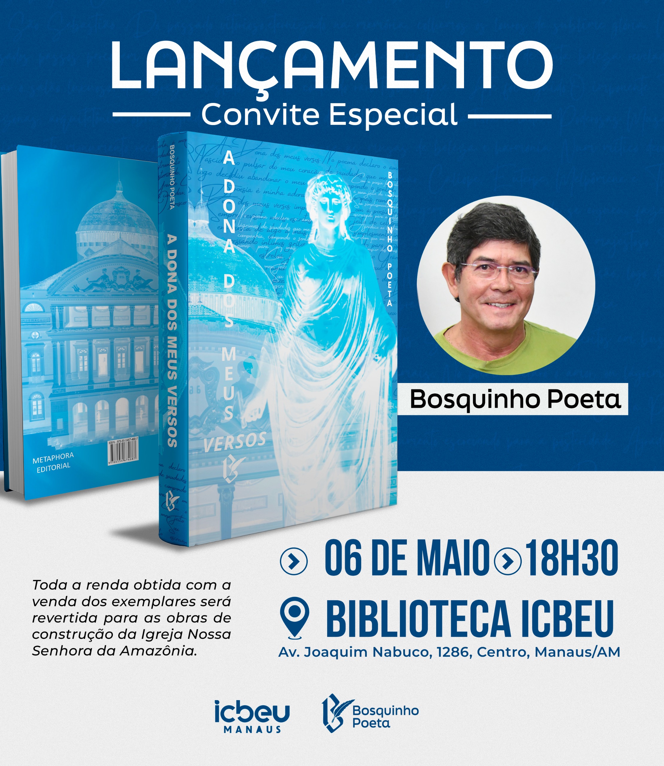 No próximo dia 6 de maio de 2025, às 19h, a Biblioteca do Teatro ICBEU, em Manaus, será palco do lançamento de A Dona dos Meus Versos, novo livro do poeta amazonense Bosquinho Poeta.