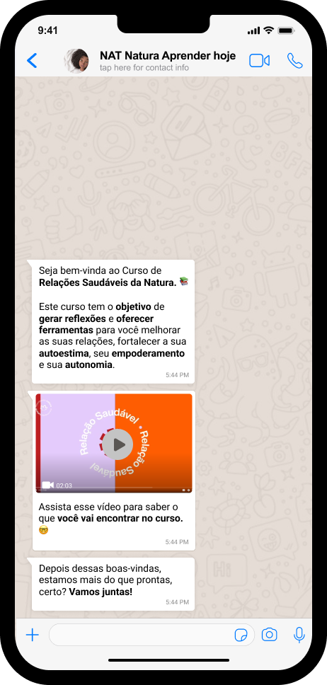 A Natura lança, no Dia Internacional da Mulher, celebrado nesta terça-feira (8), um curso totalmente gratuito no WhatsApp sobre relacionamentos saudáveis. O objetivo é capacitar a rede de Consultoras de Beleza e sociedade para que possam identificar, prevenir, romper e denunciar ciclos de violência. Para fazer o curso, basta mandar um “oi” para o telefone (11) 96184-1291.