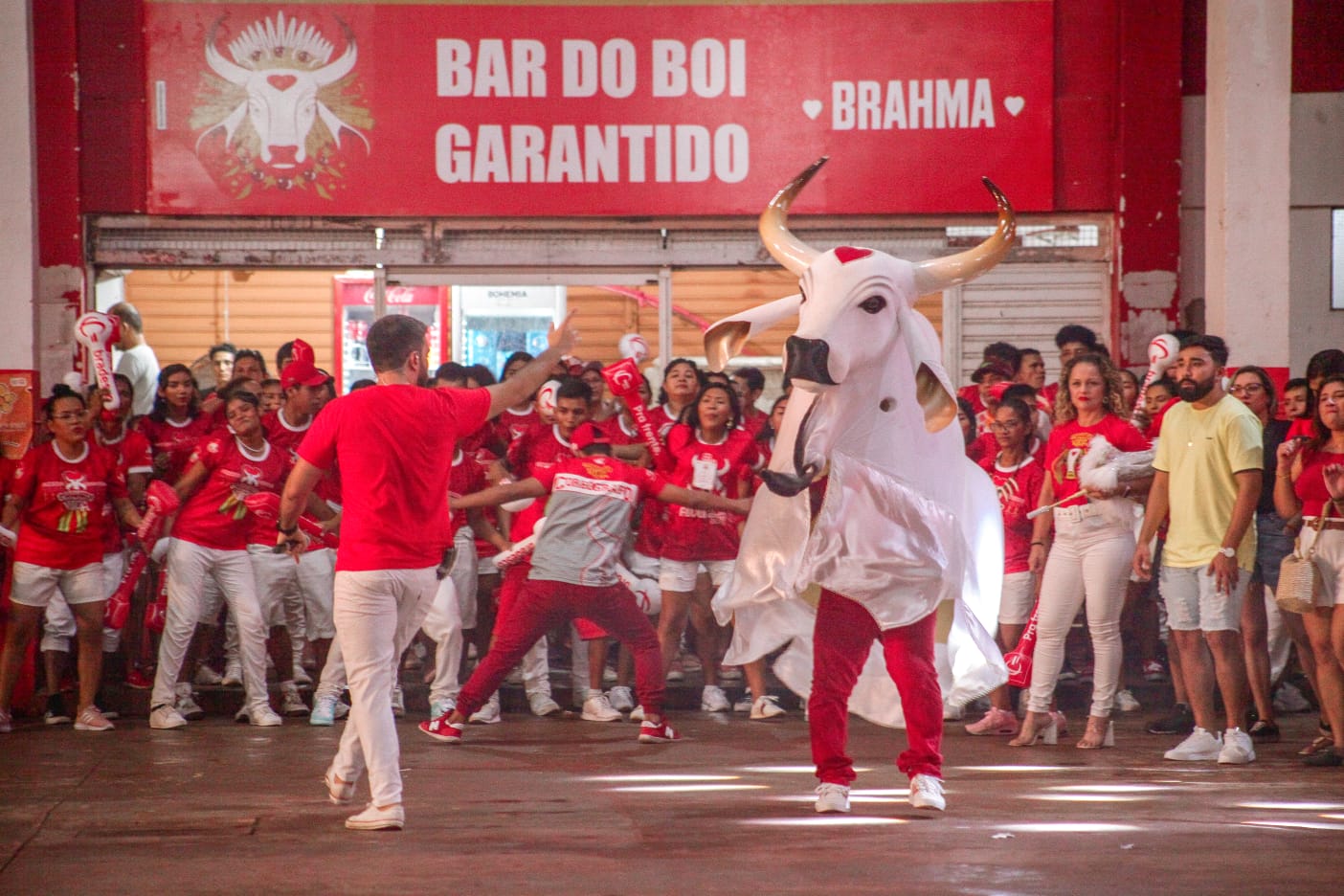 O mestre de cerimônia, o apresentador Israel Paulain conduziu com maestria o espetáculo. Sebastião Júnior entoou as toadas que fazem parte do repertório dessa noite específica, e o amo do boi, João Paulo Faria, versou para o público. A torcida oficial, Comando Garantido não parou um só momento.