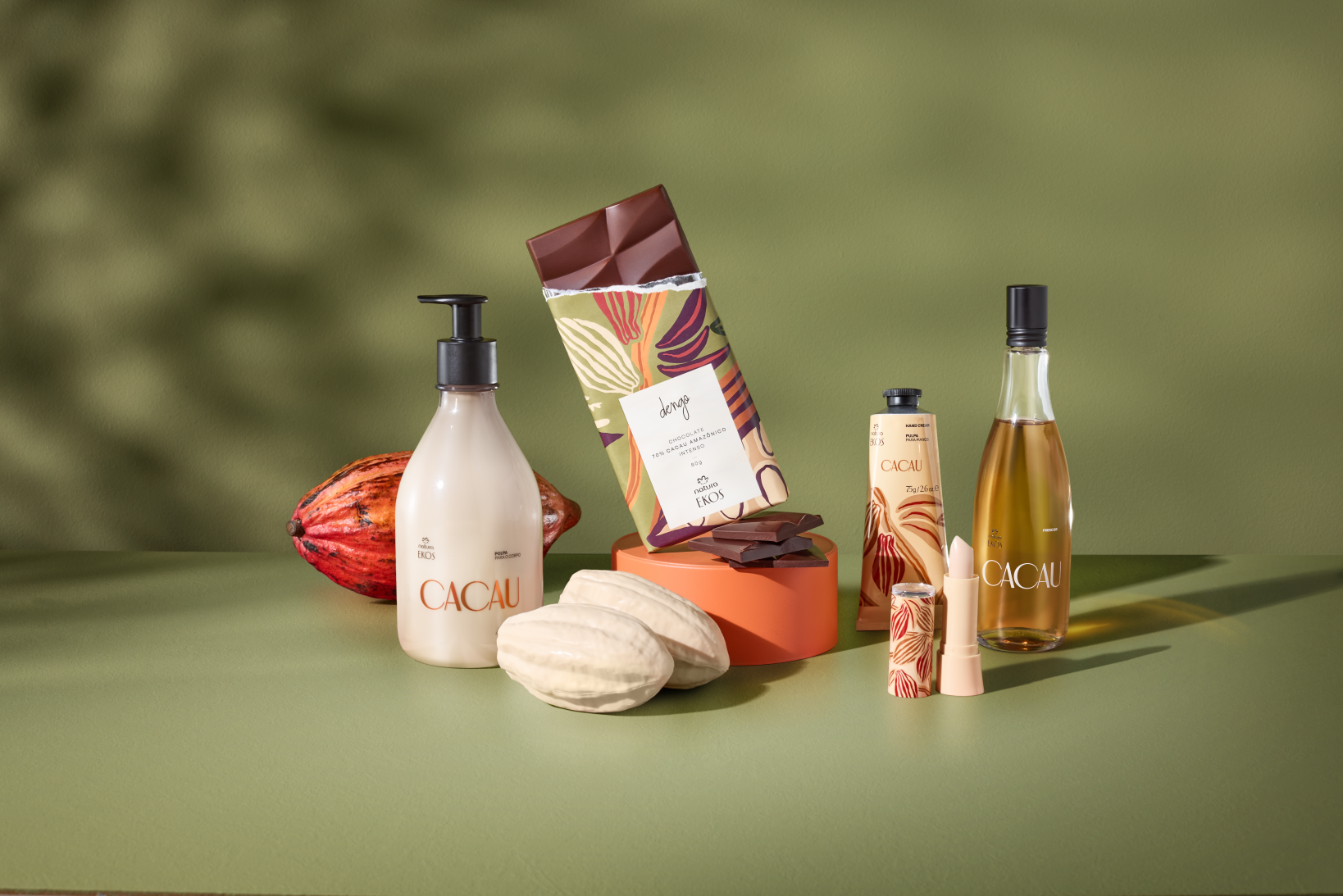 A parceria marca a chegada da linha Natura Ekos Cacau, uma inovação no portfólio de Natura Ekos que celebra o poder da manteiga bruta do cacau amazônico para um ritual completo de cuidado com a pele. Com eficácia comprovada, a linha potencializa em duas vezes a produção de colágeno, promovendo firmeza e nutrição intensa, além de trazer uma fragrância inédita com extrato aromático 100% natural do cacau. Tanto Natura Ekos quanto a barra de chocolate da Dengo, são feitos com cacau amazônico que gera mais renda para 150 famílias amazônidas, beneficiadas com o cultivo do cacau. Ambas as empresas certificadas pelo sistema B, compram o Cacau da Cooperativa CEPOTX, no Pará.