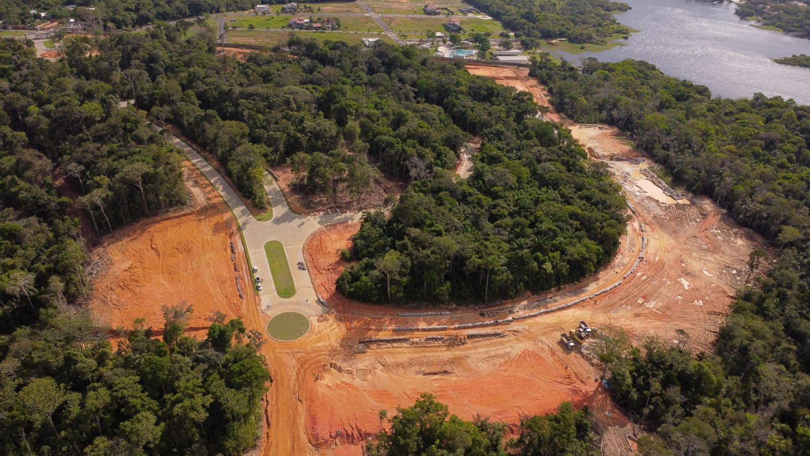 O diretor da BTP Urbanismo, João Batista Pi, informa que foi iniciada a construção do Clube Sports, o paisagismo da entrada inclusive com o espelho d’água da primeira rotatória, além da finalização da pavimentação de toda a primeira etapa, terraplenagem para início das obras do Clube Social e Capela, e travessia do Igarapé Oriente.