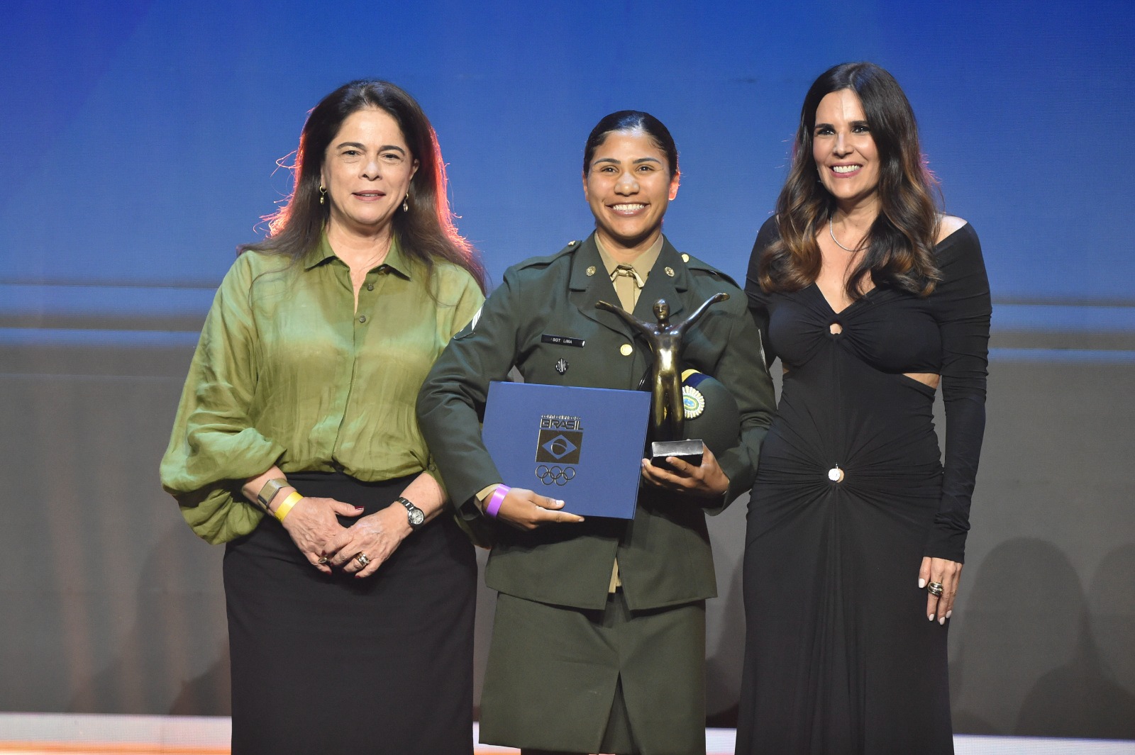 Durante a cerimônia, Cláudia Romano — presidente do Instituto Yduqs, vice-presidente do grupo educacional Yduqs e presidente do Pacto pelo Esporte — entregou o prêmio “Atleta Revelação” para Rebeca Lima, do boxe, reforçando o compromisso da instituição com a promoção do esporte e com o reconhecimento de jovens talentos que têm se destacado no cenário nacional.