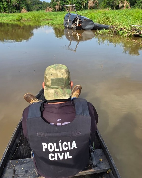 De acordo com o delegado Célio Lima, titular da 70ª DIP de Juruá, a equipe foi acionada após moradores relatarem que haviam visto uma aeronave parcialmente submersa próxima a um lago. As diligências foram iniciadas, com apoio da Guarda Municipal, e no local foi encontrado um helicóptero de cor preta, modificado para o transporte de entorpecentes.