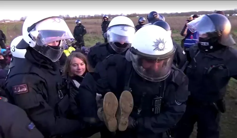 Um porta-voz da polícia de Aachen disse à Reuters que “ela [Greta] foi parada e levada por nós com este grupo para fora da área de perigo imediato para verificar sua identidade”, acrescentando que um ativista havia pulado dentro mina.Ainda segundo o porta-voz, ainda não está claro o que acontecerá com Thunberg e com o grupo detido com ela. Não há informações sobre o estado do ativista que pulou na mina.
