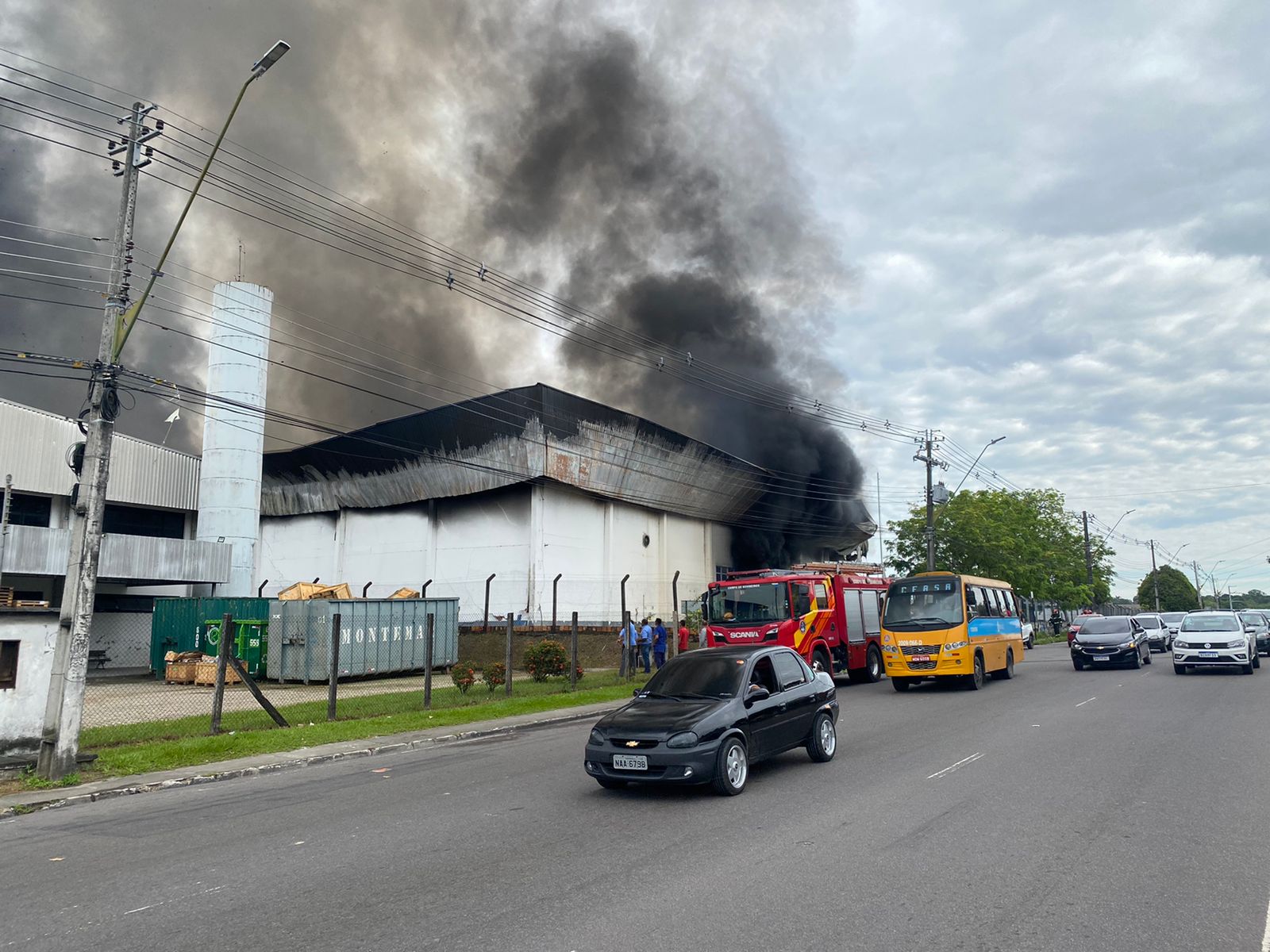 Um incêndio de grandes proporções atinge neste momento a fábrica PCE, localizada na avenida Autaz-Mirim, no bairro Armando Mendes, zona leste de Manaus. Militares do Corpo de Bombeiros, com o apoio dos brigadistas da empresa, atuam para conter as chamas que já comprometeu as estruturas do prédio.