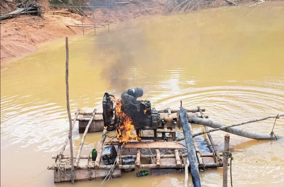“Encontramos vários maquinários, escavadeiras hidráulicas, pá carregadeira, quadriciclos para usar no transporte e na movimentação dos garimpeiros no interior da unidade e também muito combustível,”, disse o coordenador da operação do Instituto Chico Mendes de Conservação da Biodiversidade, Sidney Rodrigues.