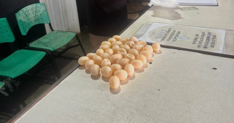 Durante inspeção de rotina no setor de bagagens, policiais federais identificaram uma mala despachada pela passageira contendo 36 ovos de tracajá, espécie de tartaruga amazônica protegida pela legislação ambiental.