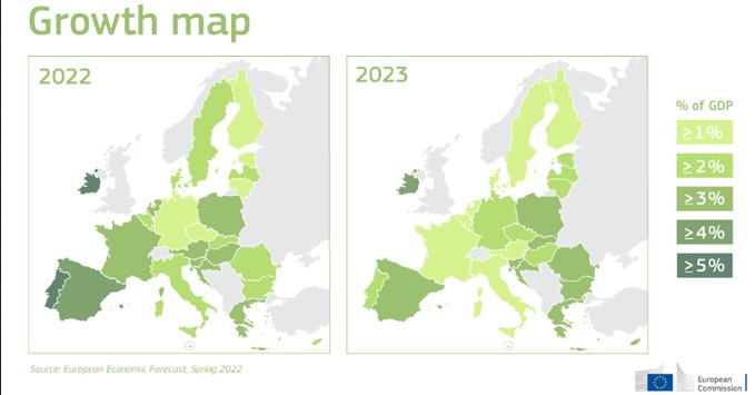 Com a taxa estimada para este ano, Portugal será o país que mais vai crescer em 2022, de acordo com as previsões da Comissão Europeia.