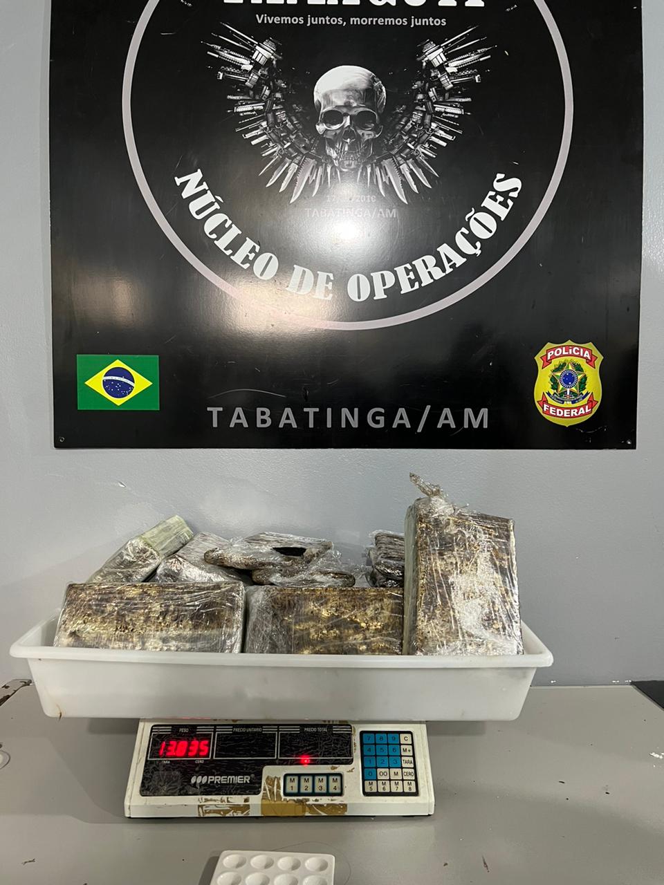 “Foi decretada a prisão de um homem, de origem colombiana, que foi encaminhado à Delegacia da Polícia Federal em Tabatinga/AM. Foi instaurado inquérito policial para verificação da procedência da droga. Vale ressaltar que o crime de tráfico de drogas (art. 33 c/c art. 40,I da Lei 11.343/06), com pena de até 15 anos de reclusão, além de multa”, diz a nota,