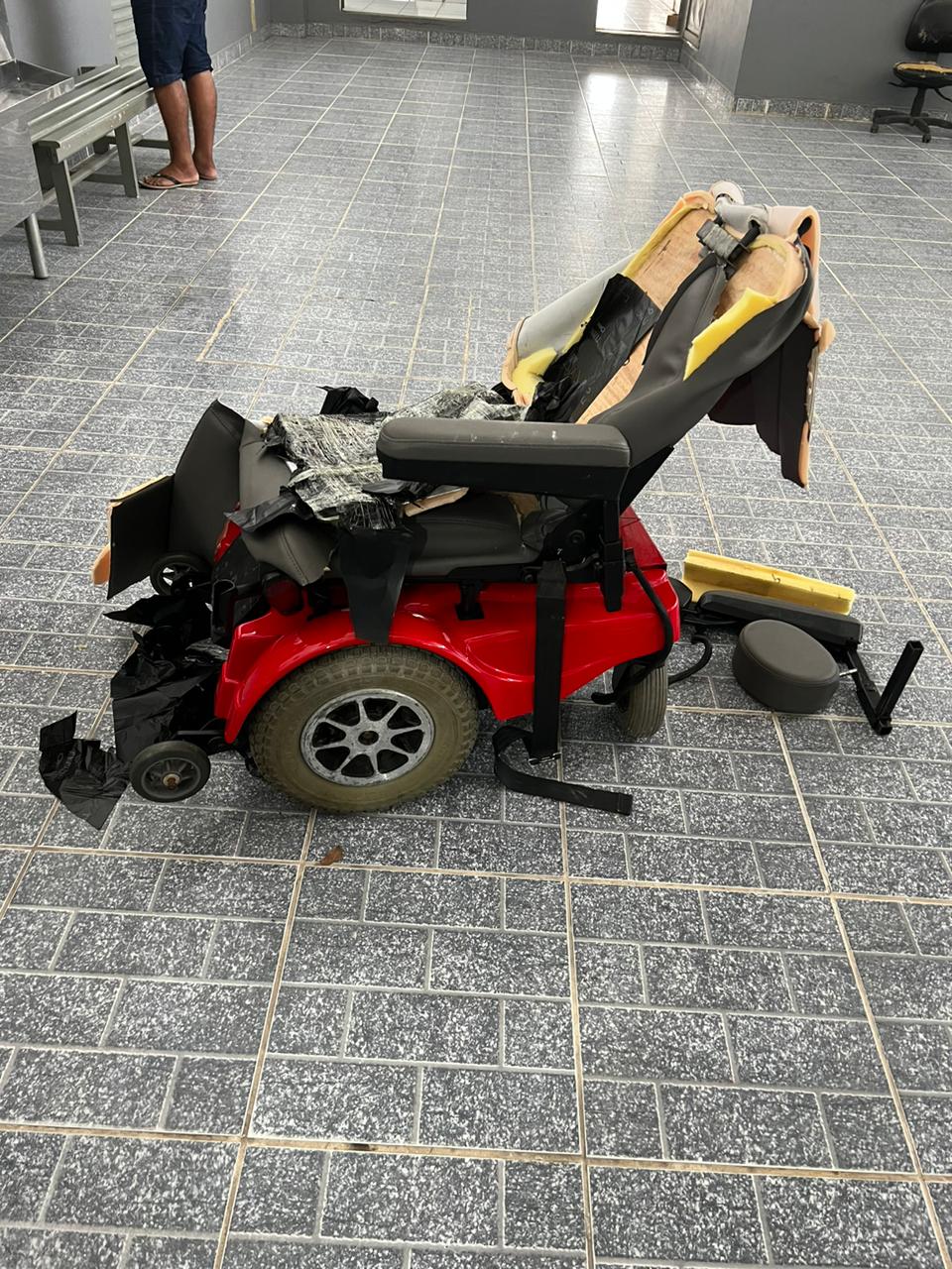 Pasta-base de cocaína foi encontrada no assento da cadeira de rodas