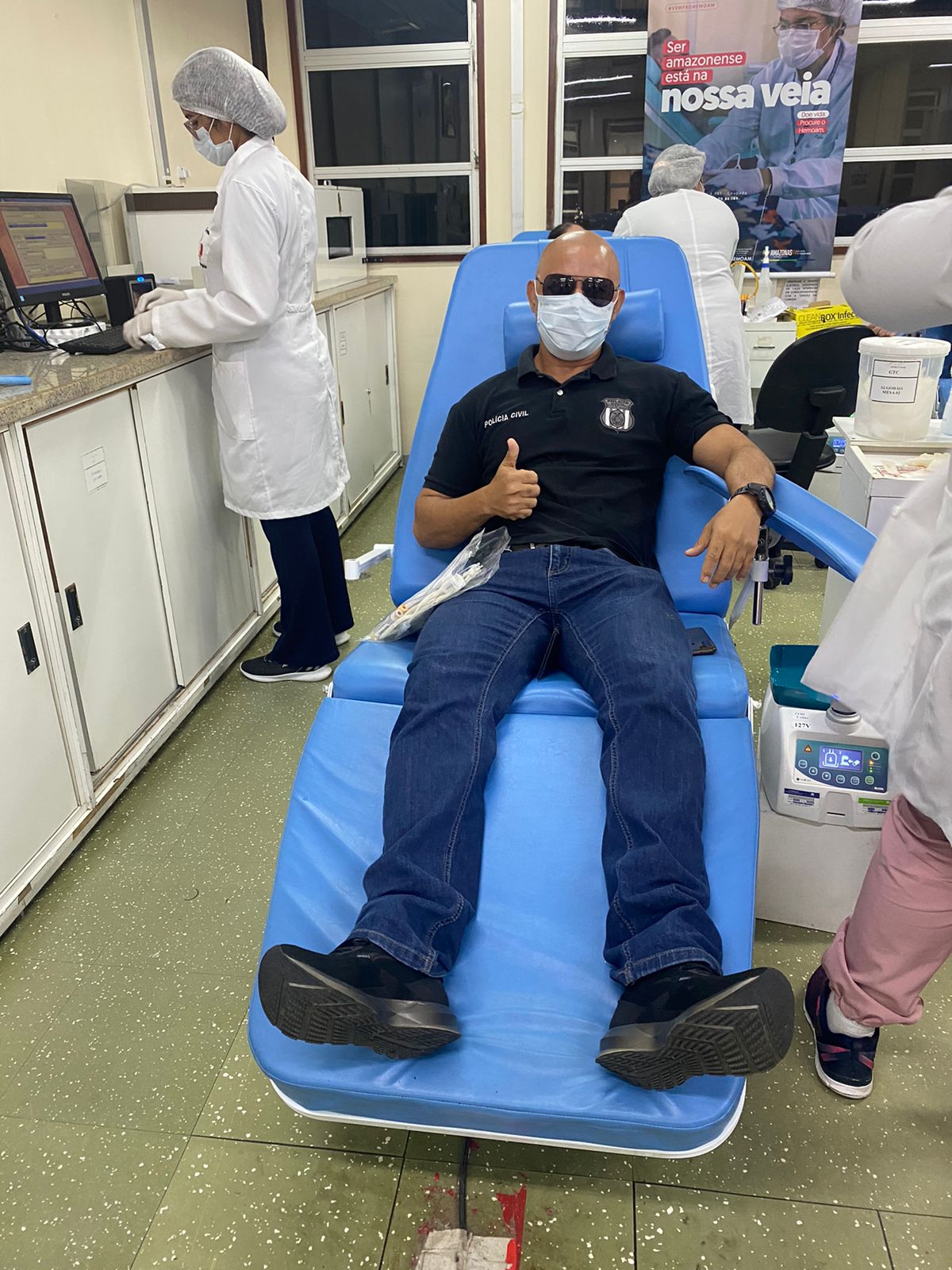 Investigadores e escrivães, que cobram do governador Wilson Lima (UB) o pagamento do escalonamento e do destravamento das promoções, realizaram nesta sexta-feira (10/06), um movimento em doação de sangue na Fundação Hospitalar de Hematologia e Hemoterapia do Amazonas (Hemoam), bairro Chapada, zona centro-sul de Manaus.