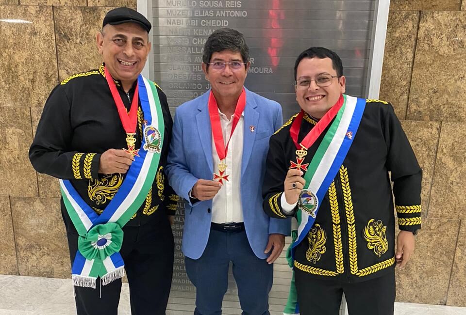 Os professores Rodrigo Froés. Paulo Gravata, e o escritor, Compositor e empresário Bosquinho Poeta, receberam, ontem (1º/09). na Assembleia Legislativa de São Paulo (Alesp), a medalha Templária Milenar, concedido pela Ordem Templária do Brasil.