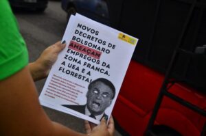 No protesto, os manifestantes ergueram faixa e distribuíram panfletos sobre os ataques do presidente Jair Bolsonaro (PL) ao Polo Industrial de Manaus. Os participantes do ato publico são contra os decretos que tiram a competitividade do modelo econômico amazonense.
