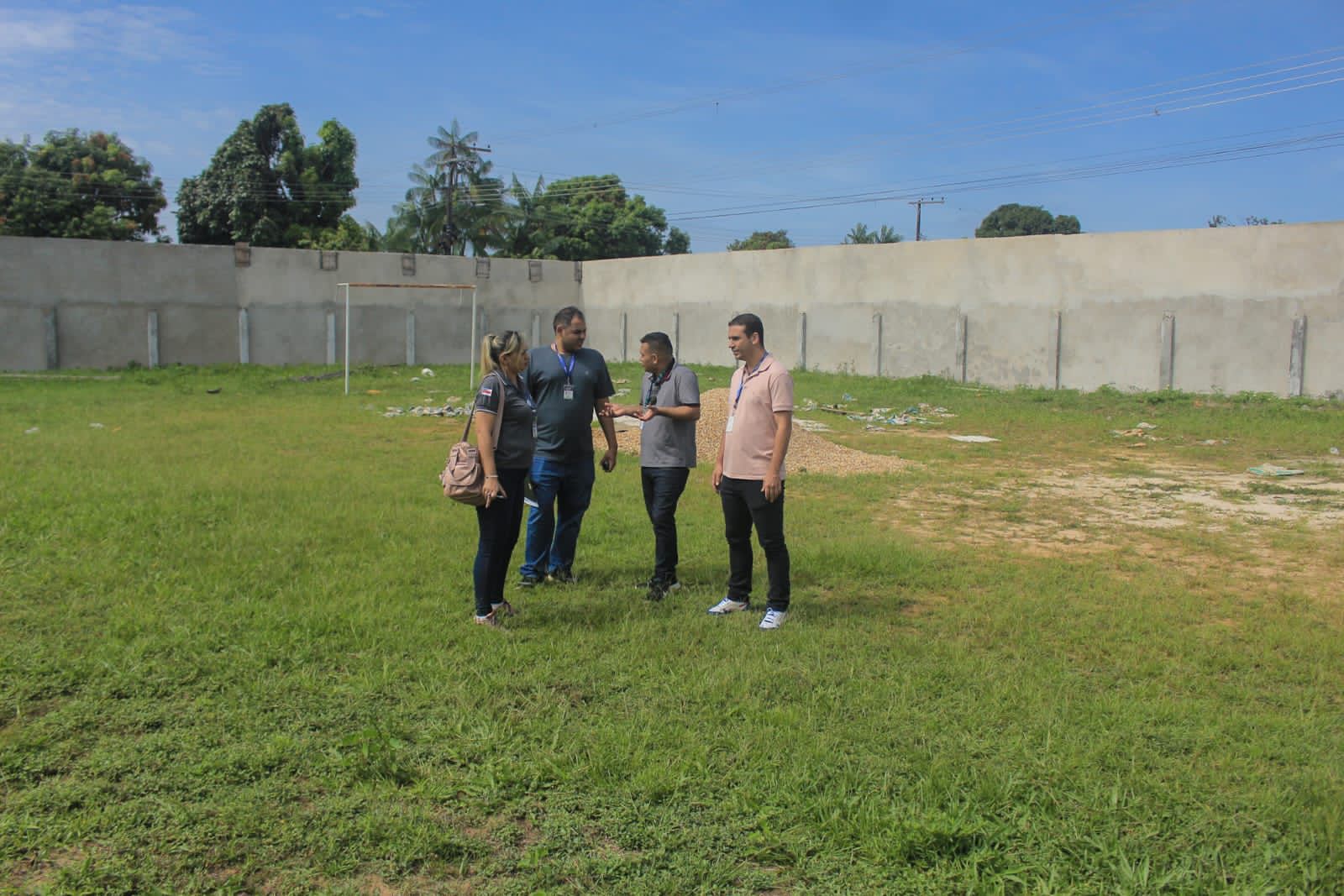 A arquiteta da Seinfra Regiane Castro, com uma equipe, coletou as informações da área para dar sequência ao planejamento da implantação da nova delegacia.