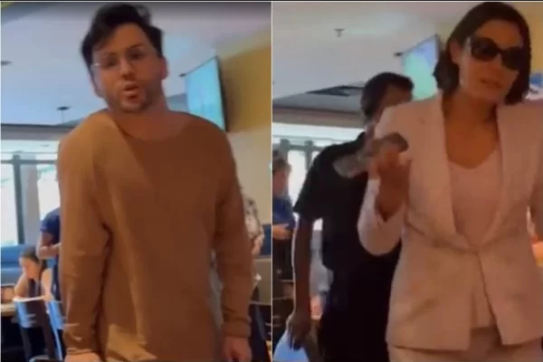Em seguida, Michelle se dirige à mesa da mulher que a questiona sobre as joias e responde, em tom irritado: “você é tão mal-informada que sabe onde estão as joias”. Nesse momento, é possível ouvir um barulho – o maquiador jogou um copo de gelo na mulher que os filmava.