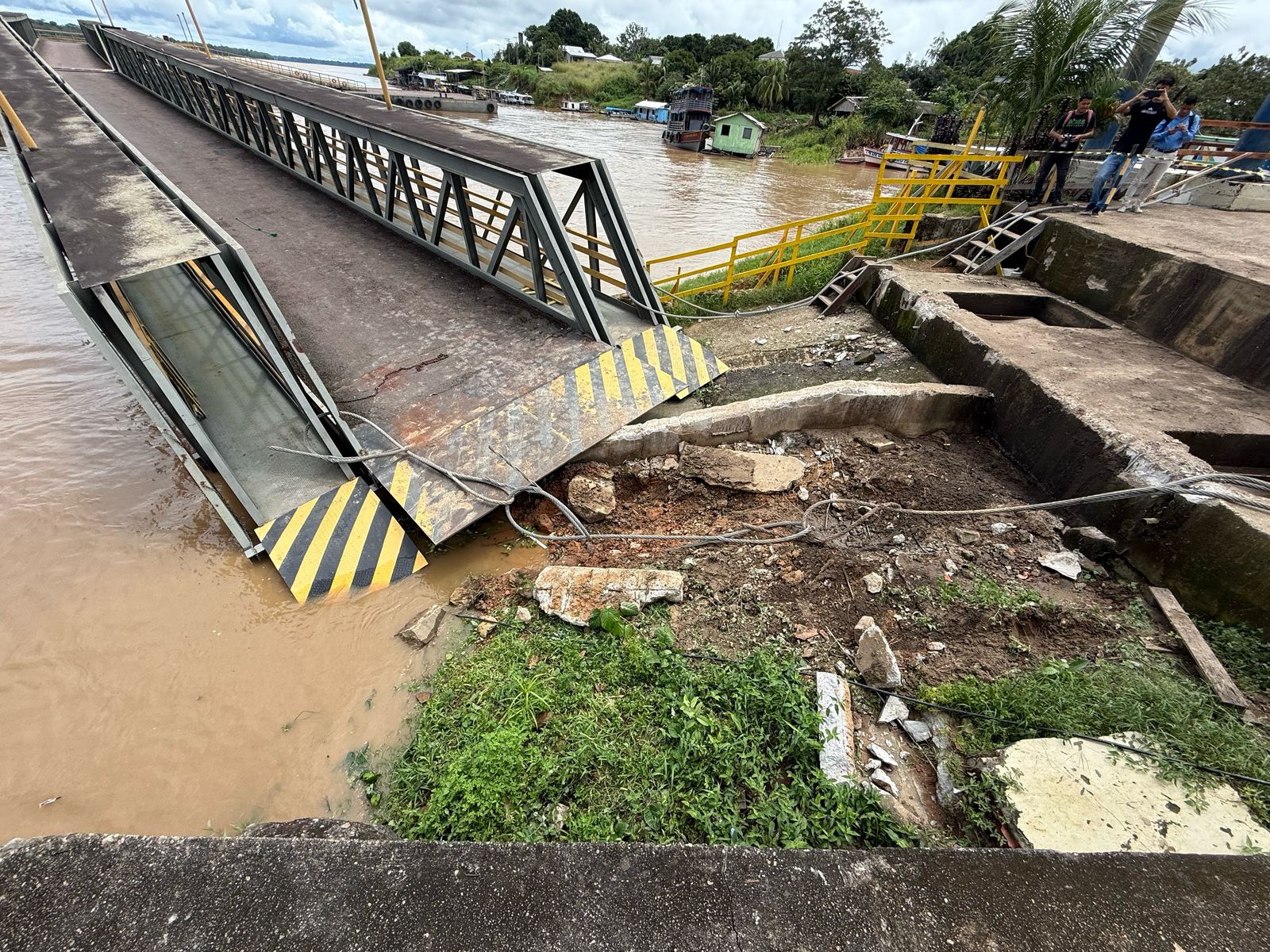 Uma equipe composta por engenheiros civil e naval, soldadores e montadores, coordenada pelo superintendente regional do DNIT no Estado do Amazonas, Orlando Fanaia, esteve no município de Borba nesta segunda-feira (24/02). No local, os técnicos identificaram a gravidade dos danos e produziram relatório sobre as medidas a serem executadas. Na terça-feira, será feita a preparação de cabos de amarração para mitigar o risco de as pontes afundarem no rio Madeira. Além disso, será avaliada a possibilidade da energização da componente naval.