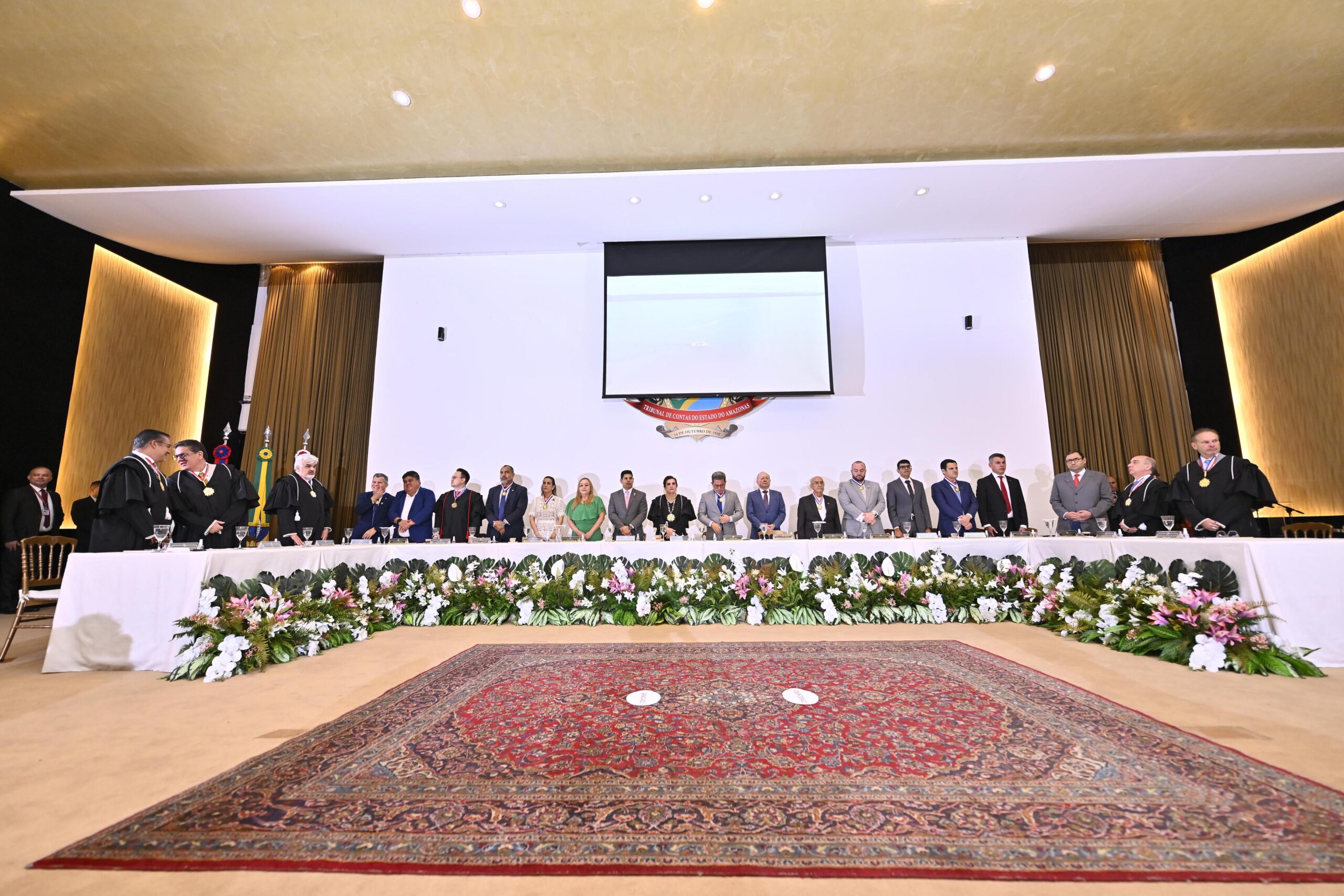 A solenidade, realizada no Auditório Franco de Sá, reuniu forças de segurança, representantes do Executivo, Legislativo e Judiciário, autoridades civis e militares, membros da administração pública e privada, servidores e familiares dos homenageados. Além da presidente do TCE-AM, Yara Lins, estiveram presentes os conselheiros Júlio Pinheiro, Josué Cláudio Neto, Mario de Mello, Érico Desterro e Ari Moutinho, que compuseram o dispositivo de honra ao lado das demais autoridades.