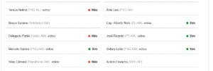 Dos seis parlamentares da bancada do Amazonas, votaram a favor os deputados Sidney Leite (PSD), Capitão Alberto Neto (PL), José Ricardo (PT) e Marcelo Ramos (PL). Não votaram os deputados Bosco Saraiva (SD) e Átila Lins (PSD).