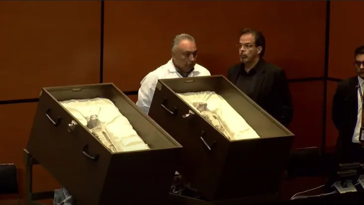 Restos mumificados que seriam de seres extraterrestres foram exibidos na Câmara dos Deputados do México, na terça-feira (12), durante debate em uma Assembleia Pública para Regulação de Fenômenos Aéreos Não identificados, promovido pelo deputado Sergio Gutiérrez Luna, segundo informações da CNN Español.